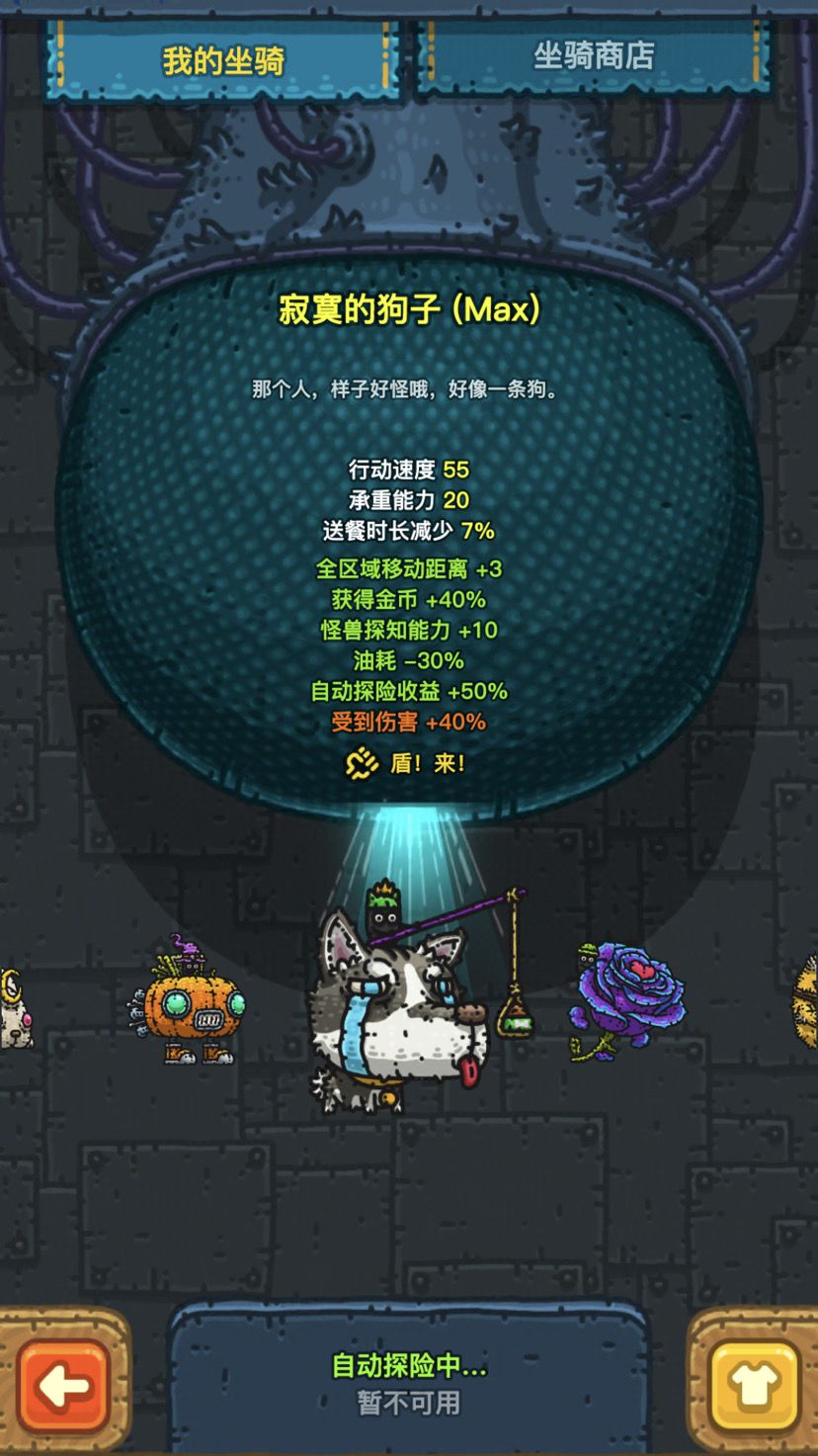 狗子,自动探险多50%收益。有用,一小时探险有机会出三个大怪。