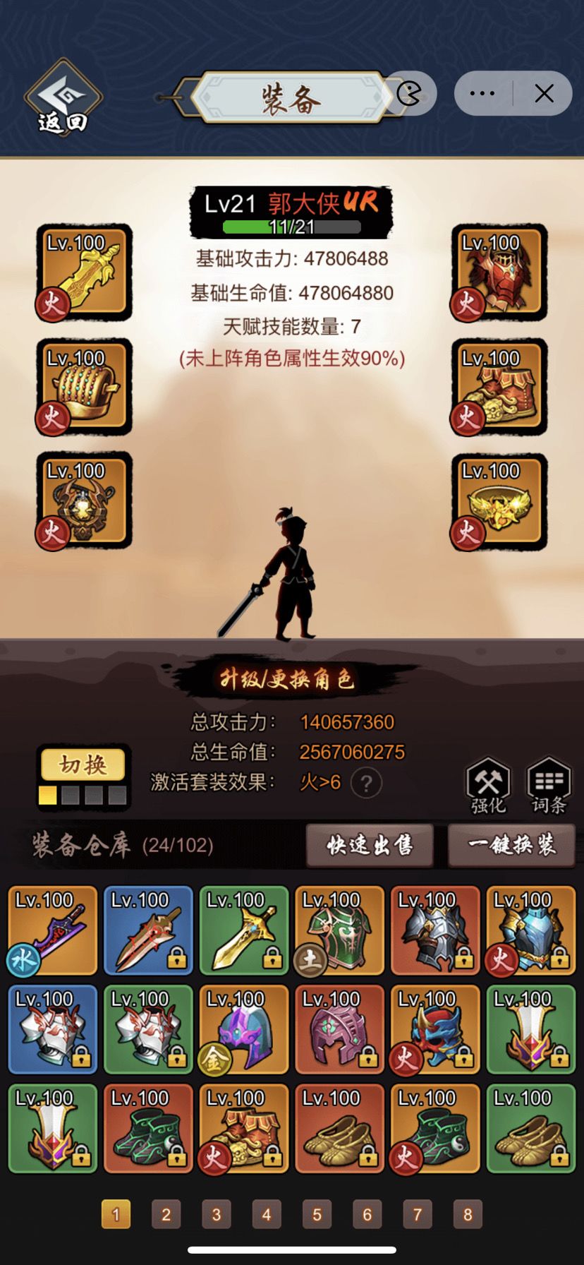 接下来可以搞装备了,目前一件极限都还没有,用的是数学魔王大佬的4刀4奇2内