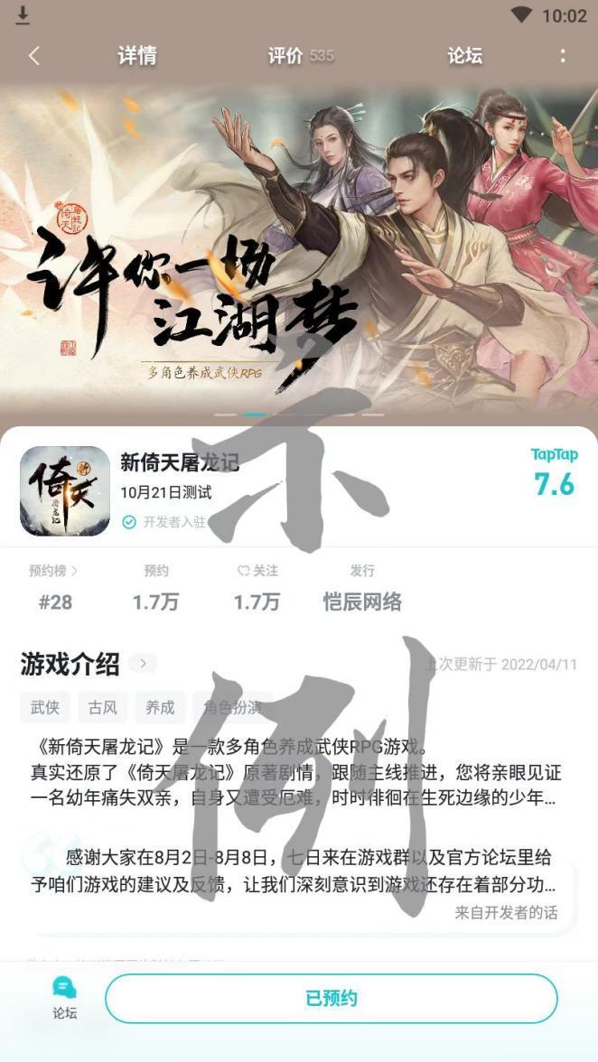 重要提示:所有参与的少主都必须已关注《新倚天屠龙记》,回帖上传预约截图需清晰,经最后核查出现取消关注预约、盗图等行为时奖励顺延哦~