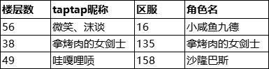 恭喜以上获奖勇者,奖励将在获奖名单公布后的三个工作日内,通过勇者们预留的联系方式发放奖励,请留意QQ消息以下是抽奖过程(备注:37楼已删除回复,获奖楼层顺延至38楼)