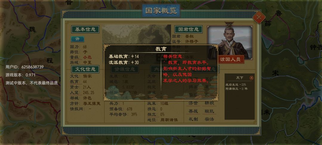 说白了,这游戏在人才这一块就是个养成游戏,就好比现实,你不送你儿子孙子去读书,他们就生而知之么?这游戏的智力,与其说是智商不如说是学识、学问,求学多了,智力自然就涨上去了,而配合儒家的增加教育的政策,求学效果更佳,求学一次每三年涨3到15点智力,二三十年从六七十智力涨到100轻轻松松,如果每年圣人给讲课效果更好