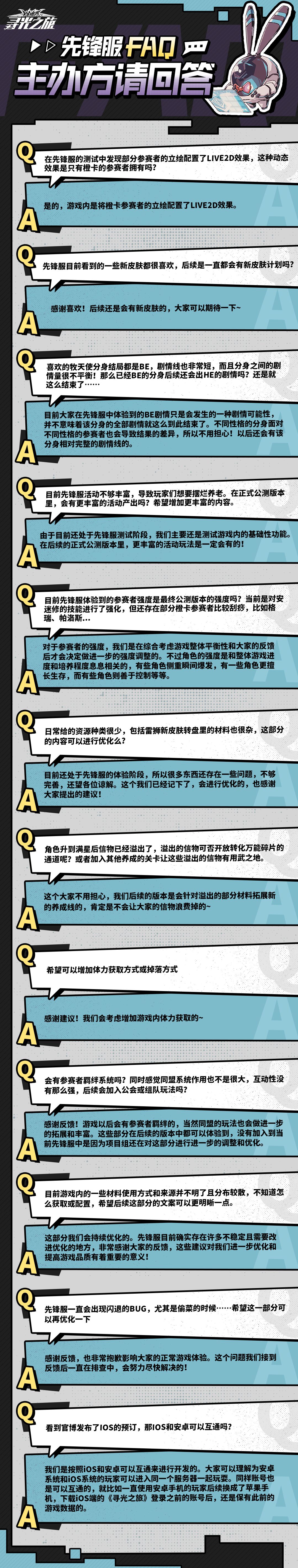 参赛者还有新皮肤吗?BE结局后还会有HE的剧情么?后续还有新活动吗?信物溢出怎么办?羁绊系统是否会安排?iOS和安卓可否互通……关于先锋服测试,参赛者关心的问题主办方进行了回答,一起来看看吧!