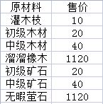 表1 原材料在商人处售价