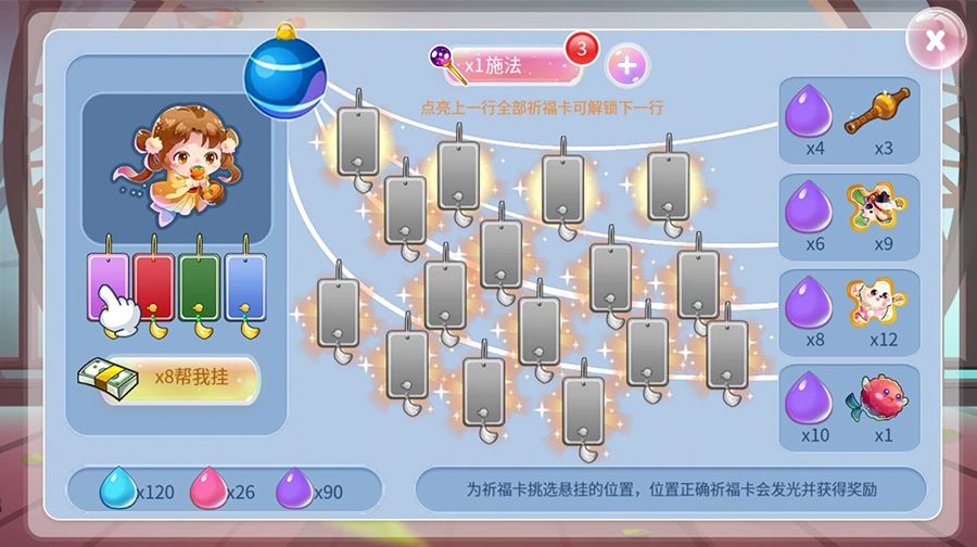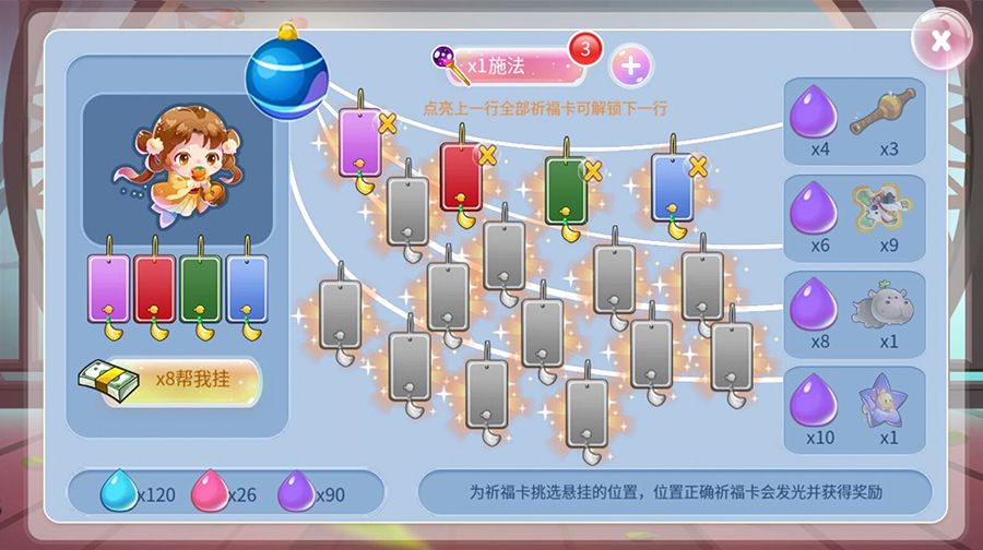 如果可以顺利到达关底,可以通过悬挂祈福卡获得更多奖励~