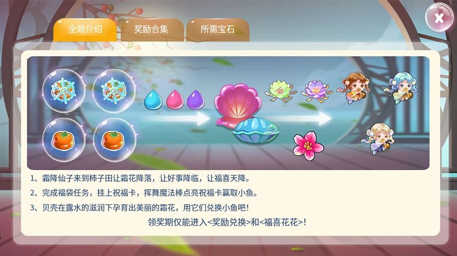 在<福喜花花>环节,主要是将在<好柿霜降>中获得的露水投放到贝壳中,将其转换为霜花、小红花积分。