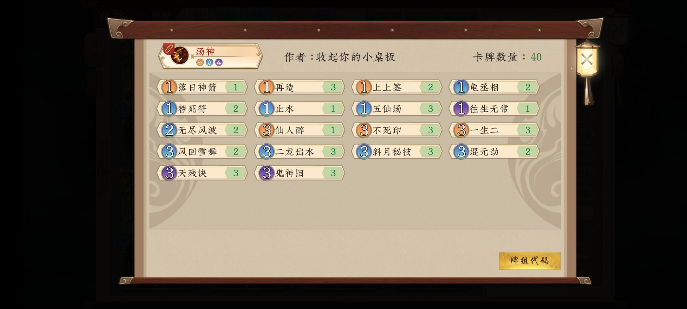 卡组核心牌:五仙汤,再造,神仙醉,一生二,鬼神泪。