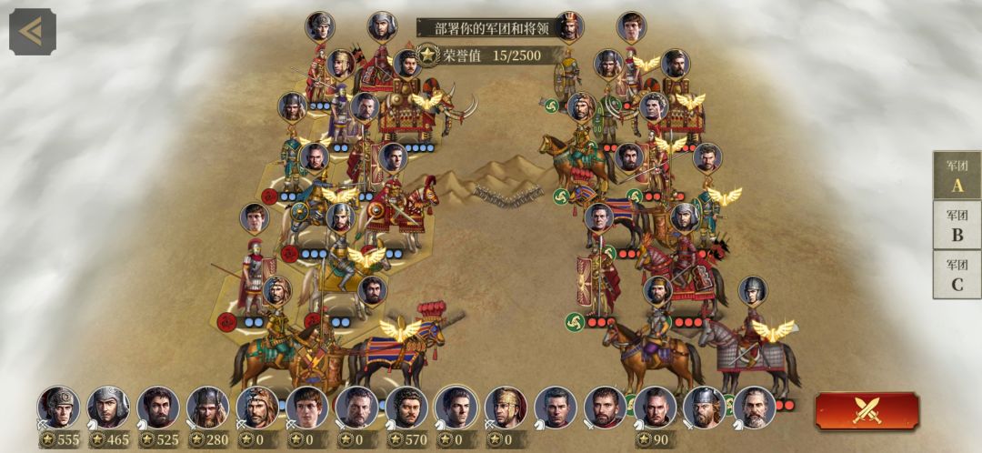 阵容如下,高配单位编队拉满,标枪,羽林卫,战车和大象5编。阵容精英化才是王道