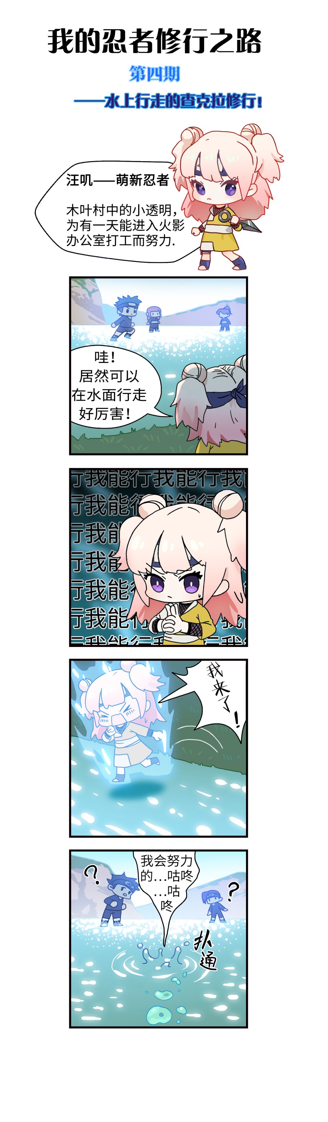 今天的汪叽就做一个“乘风破浪”的帅气忍者吧!不过,哎呀... ...果然今天也是要继续努力向前辈们靠近的一天呢!不说了,木叶村的水可真好喝(吨吨吨~)。喝的水越多,查克拉也会更多的吧,嗯!