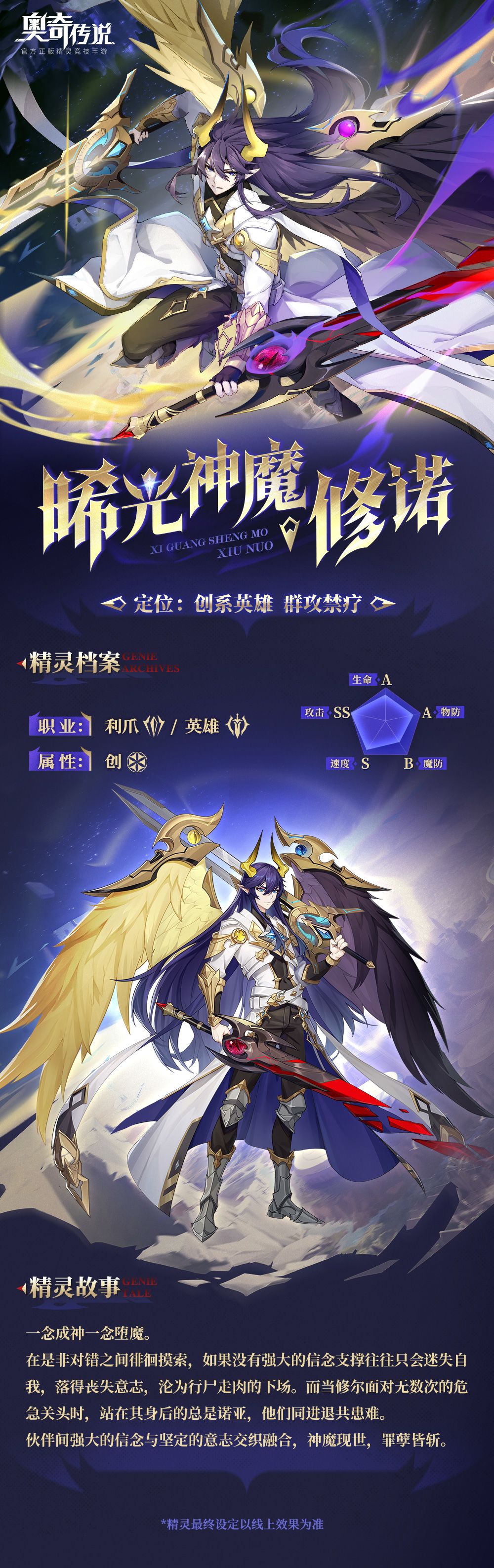 全新角色情报丨「晞光神魔·修诺」登场,“神魔之姿,光耀大地!”