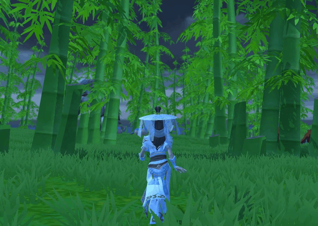 竹林密布下的雨丝