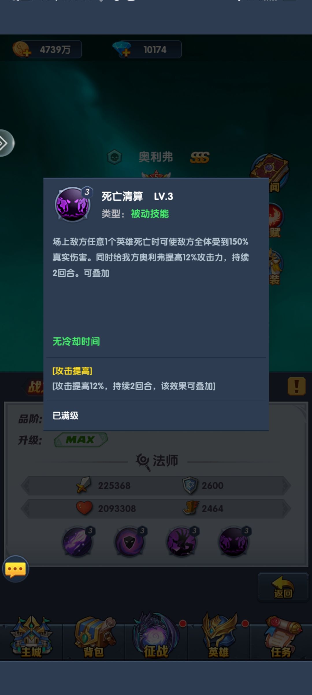 当然这个游戏也是给普通三系留了一点活路,唯一可以一直养到老的英雄,不死系奥利弗(大家都叫奥利给)
