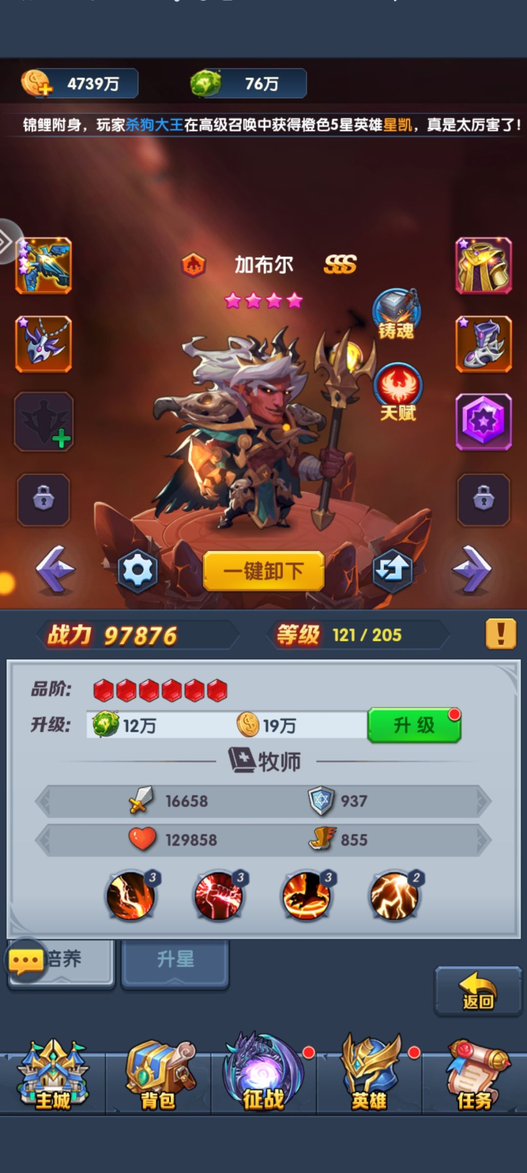 这个游戏你每次获得新的五星,每一次升星都会跳出推荐礼包,6-128不等,也许升13还有更高的,主要就是直升的经验和一定量召唤卷,自己看着也是容易冲动的消费点,大佬随意