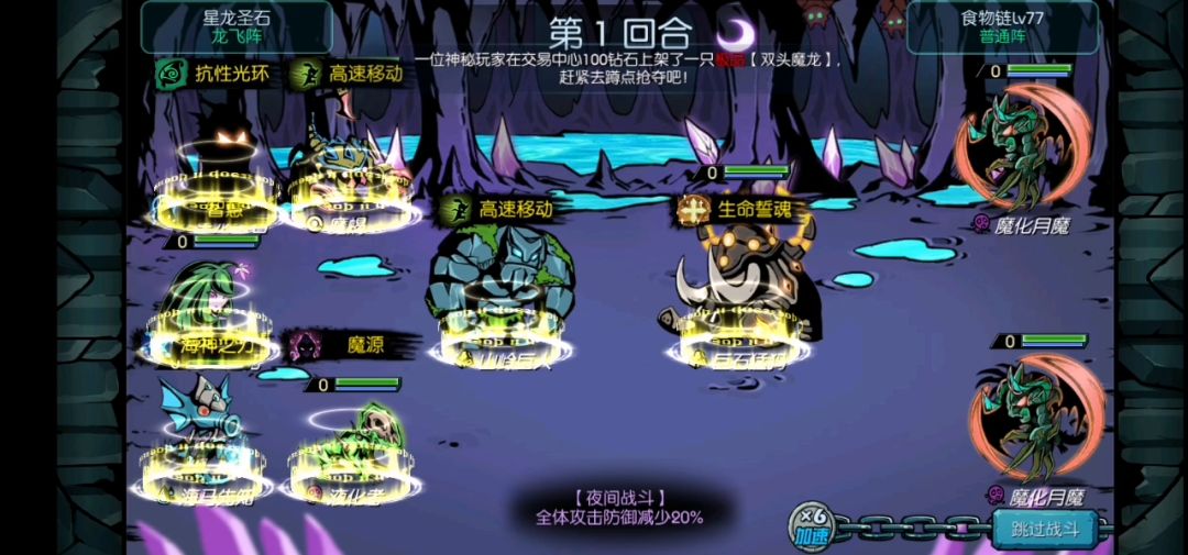 强化一下加血技能百分百触发,升到二阶能回一万血就行,能保证回满精灵之心肉的血量就行,所以前排精灵之心肉扛着,一个先手远古封,封住大象,还是死花解决大象,一个法师叠魔能(速度比月魔快更好),因为精灵之心肉可以扛很久,所以磨死大象后,法师配合封慢慢磨死一个月魔,基本上这时候月魔都没蓝了,魔能叠起来就秒,月魔。