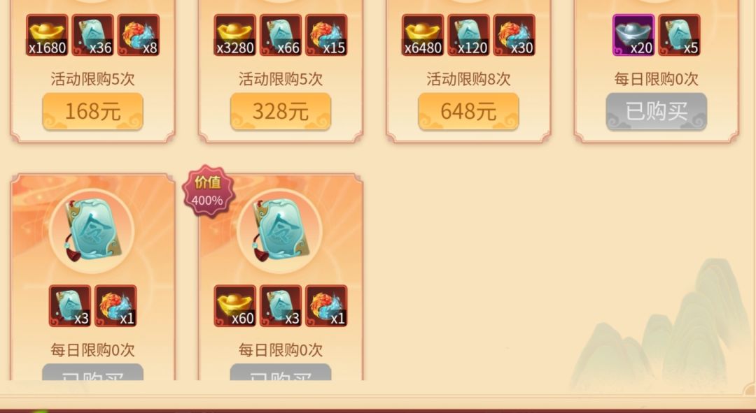 免费送的一次,180银元宝可购买3次,300金元宝可购买三次,六元,30元建议小r可以购买,往后的购买价值更低