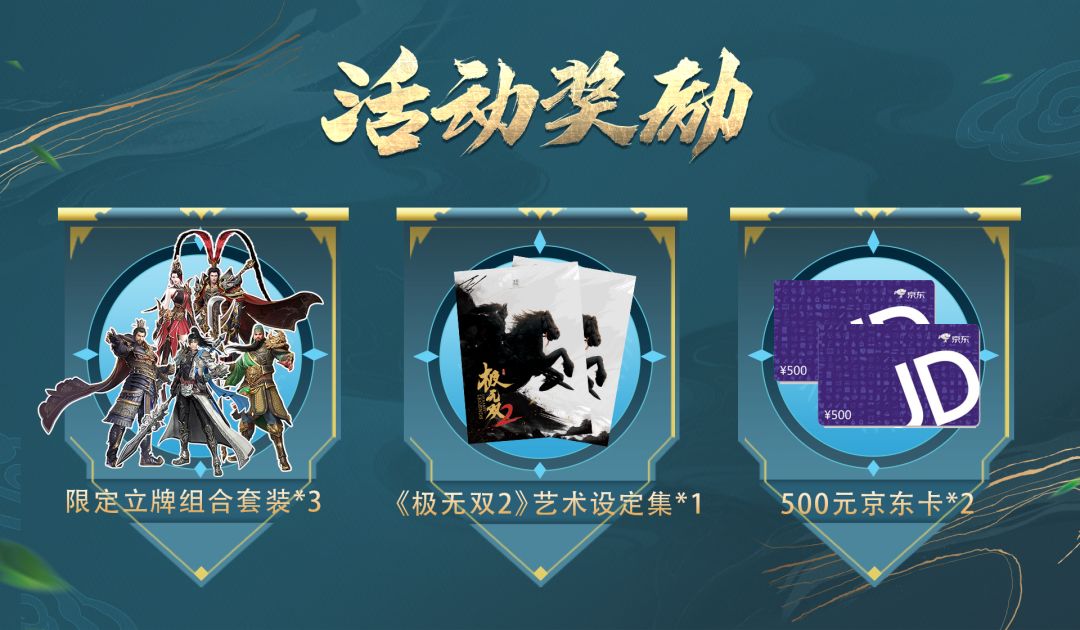 为庆祝公测开启,小煮今日一早便带着众多周边礼物准备赠予将军,以此来感谢将军对《极无双2》一直以来的支持及鼓励~将军只需截图您的游戏角色,并将QQ号+游戏角色截图回复至评论区,即可参与活动赢取 500元京东卡、《极无双2》限定艺术设定集等众多豪礼哦~
