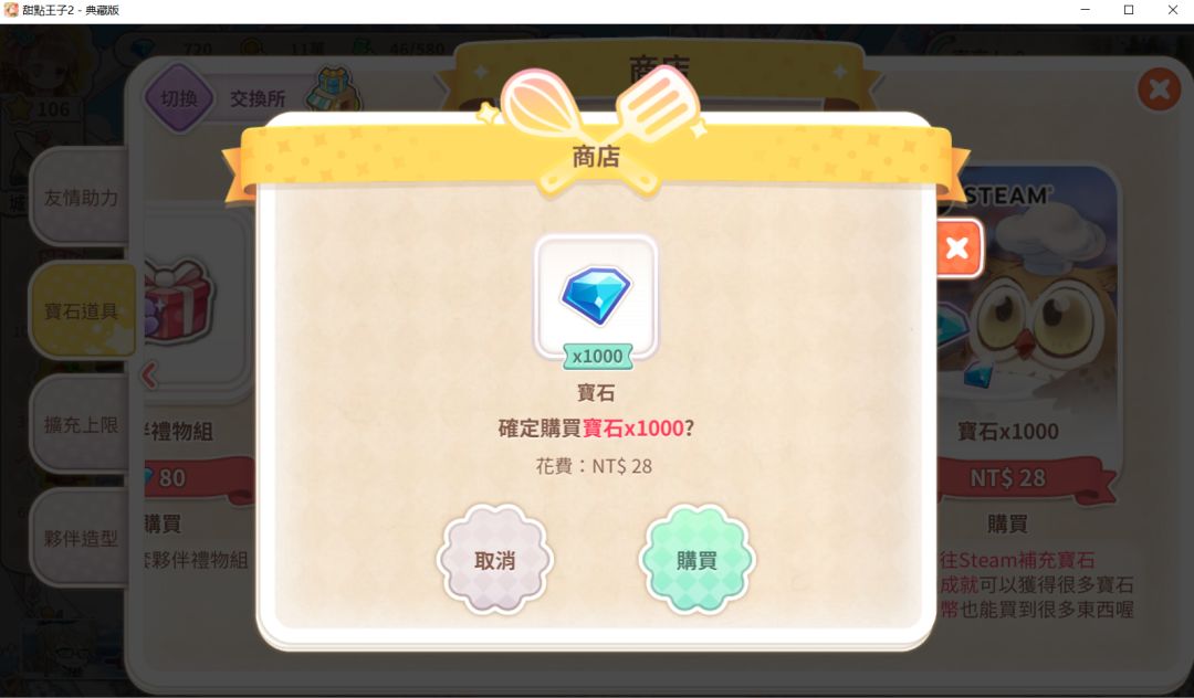6 甜品店装修可以保存为样版,以方便切换,样版的数量可以靠钻石或者友情币购买的道具来增加。