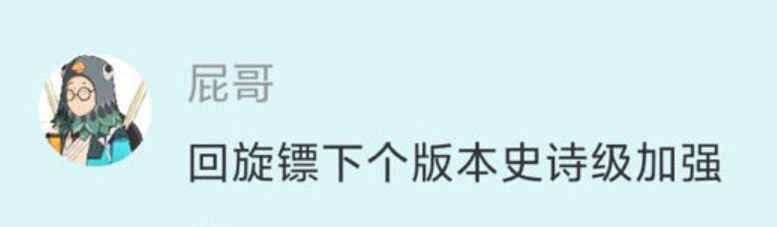 我不理解史诗级加强是什么?修复完所谓的bug以后,回旋镖又变回了以前的下限,还把更新之前的9命动作收回飞镖的也砍没了,您说你在加强什么呢?