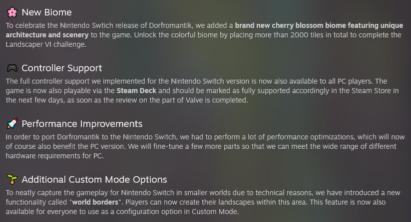 Steam 上更新,添加了和风的樱花地形、手柄支持等。