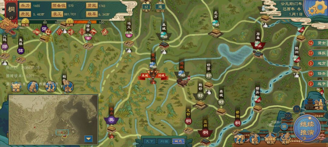 五星桐国开局,自定义难度拉满,开局一座城,经过几年的新手期摸索,打掉了舒国一座城,加上灭了番国,共三座城,其中农业发展政策发展按下不表。
