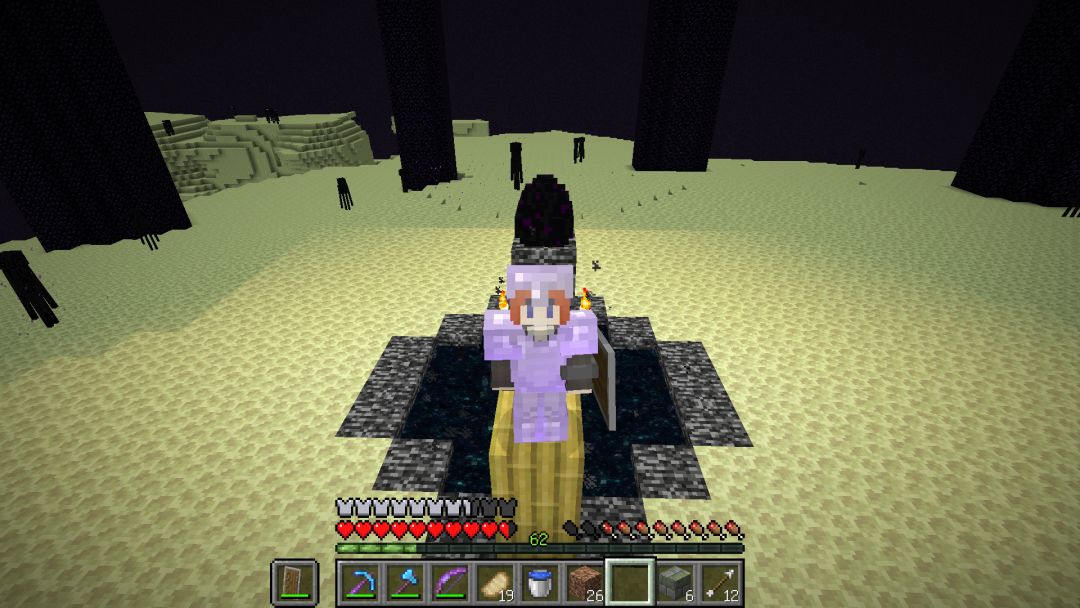 末影之眼的定位正好在一棵杜鹃树下,沿着它往下就是超级大的繁茂洞穴!继续往下就是要塞和与它完全叠加的废弃矿井,道路已经差不多损坏完了,到处残缺,绕完整个要塞才找到末地传送门。