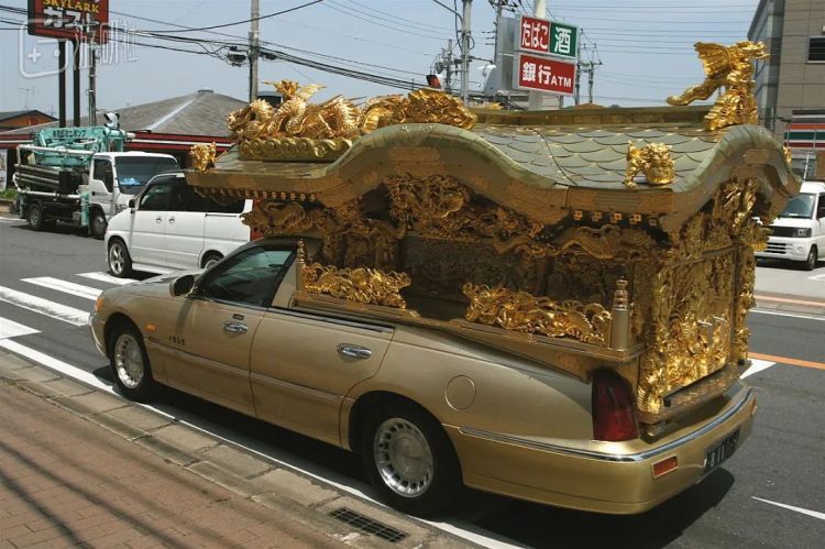 「宫型灵车」由豪华轿车和带有宗教装饰的棺室组成,据称起源于大正末期到昭和初期的大阪,被日本人称为“移动的神庙”,象征着“净土的入口”。