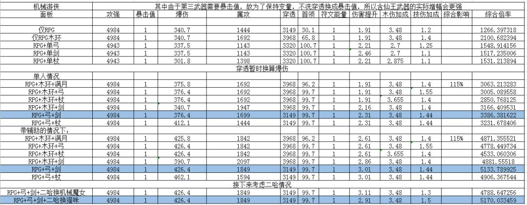 双仙王与满月的比较值是1.053872973也就比原来强了5.38%,但是是由于保持变量没洗穿透的缘故,故实际提升在10%左右,而且可以带RPG主手了,RPG对比木环的影响是8%,也就是说换双仙机械提升18%左右,提升相当的客观