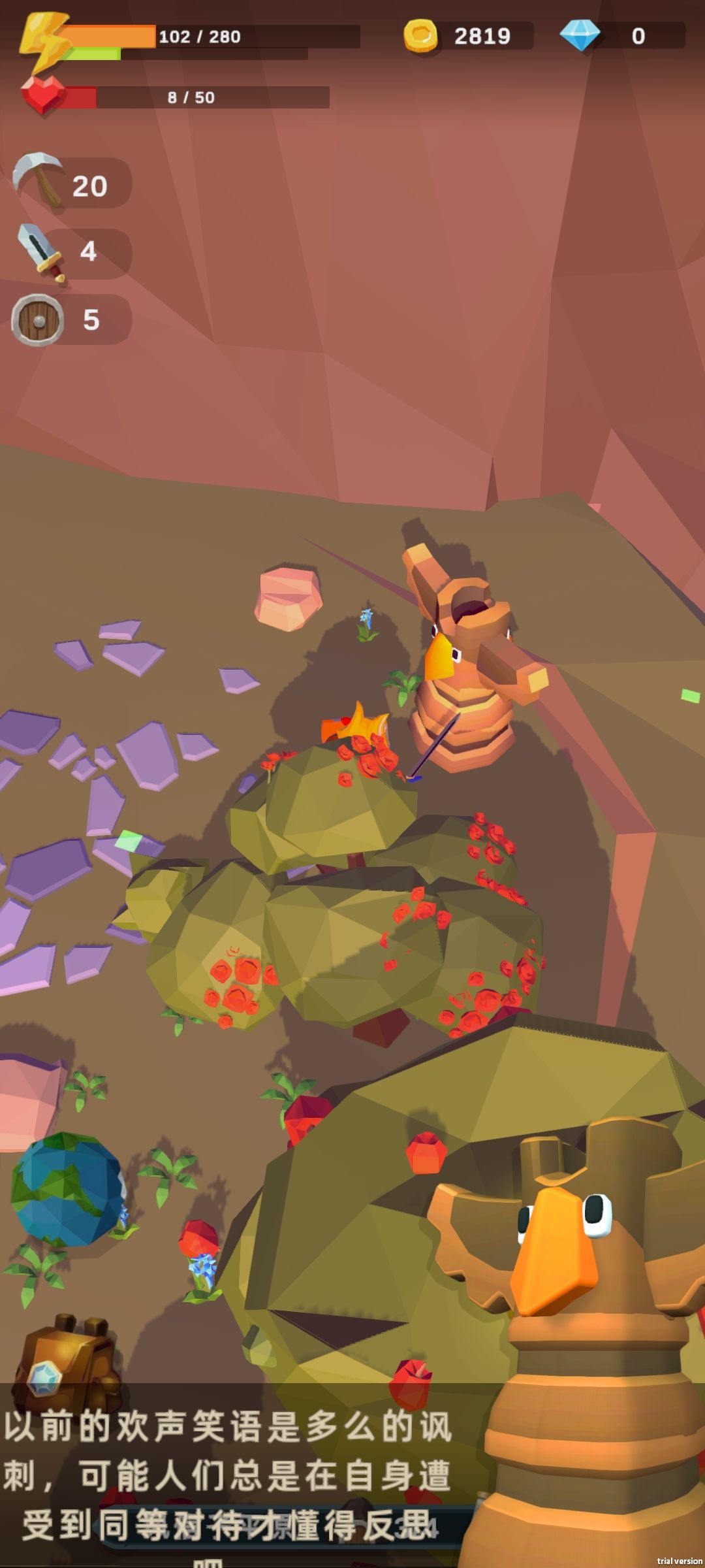 看了这么多评论说,看广告硬是看广告…为什么我没有………大家是不是还不明白怎么玩呐,千万别死磕,别死磕,看着形势不好,就先跑,敲砖收集元素,升级自己的装备属性。