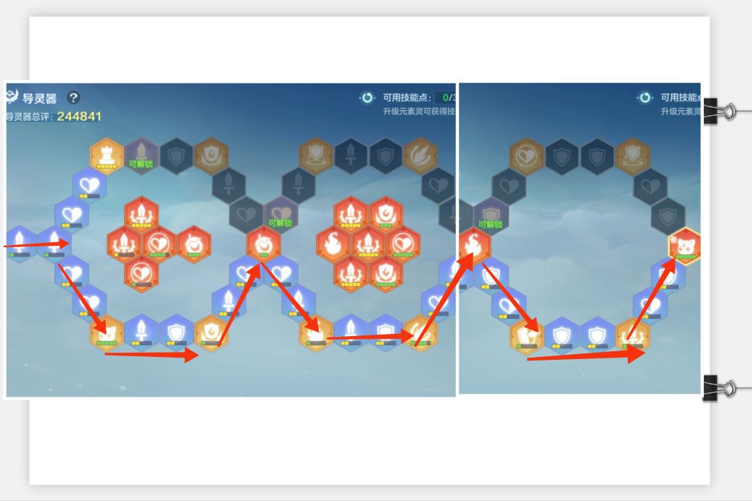 3."M型"点法前面不能兼顾元素攻击比的节点,所以不建议按这个形态点,"W"和"~"型点法则可以一箭双雕。