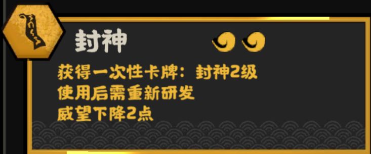 姜尚三技能-封神:获得一次性卡牌封神(使用后眩晕范围敌军6s;优先抽取)