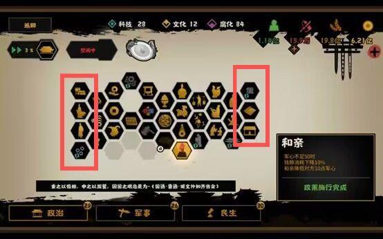 重点就是左下角循环政策生产香料、右上角政策立即察举