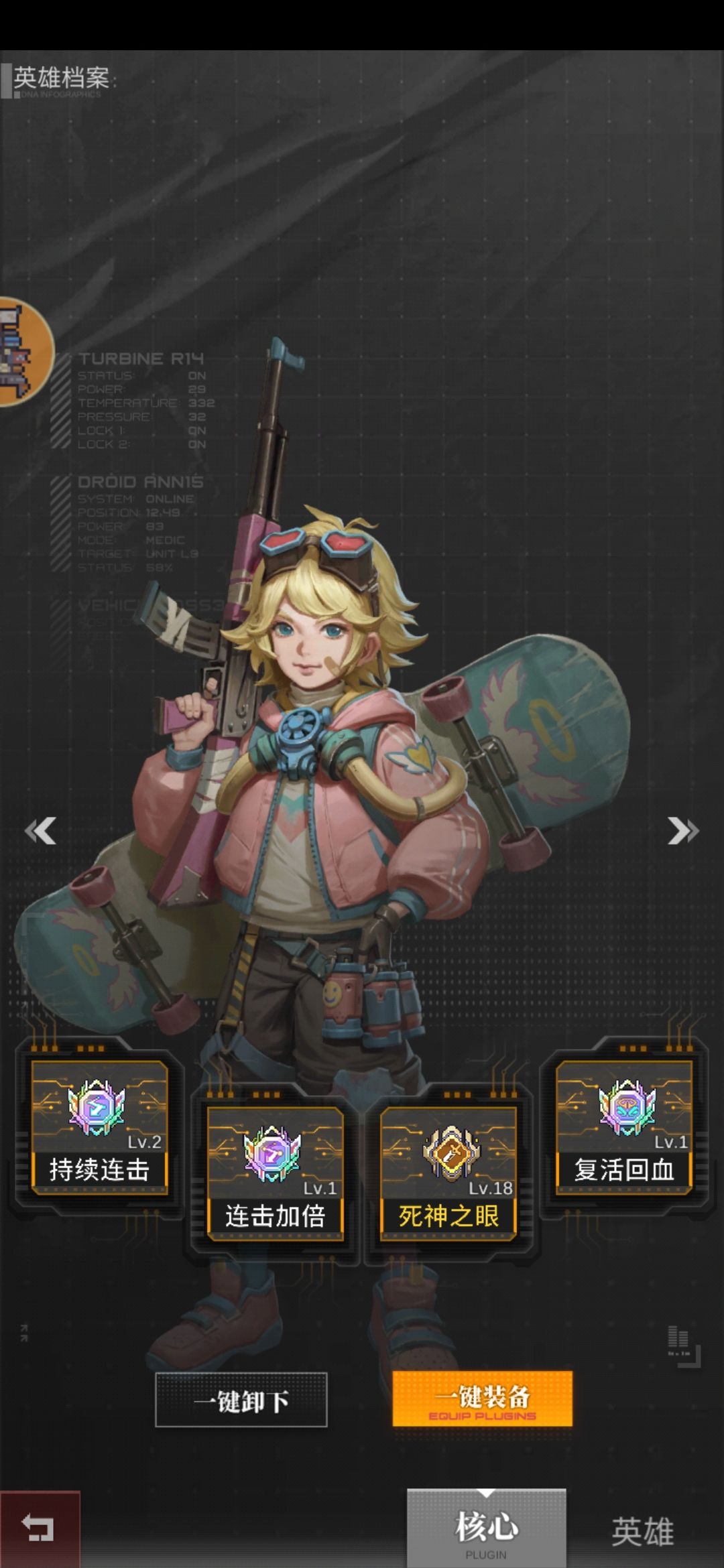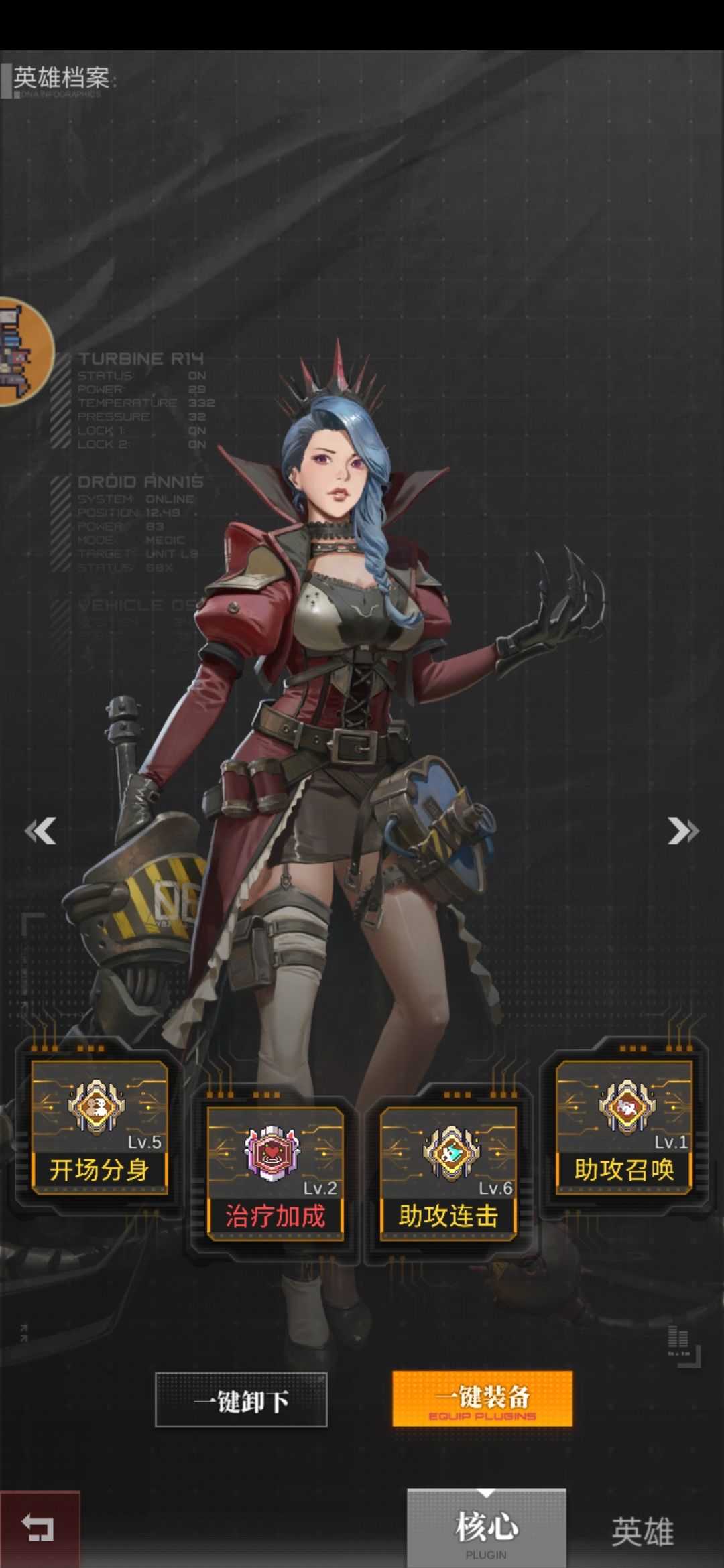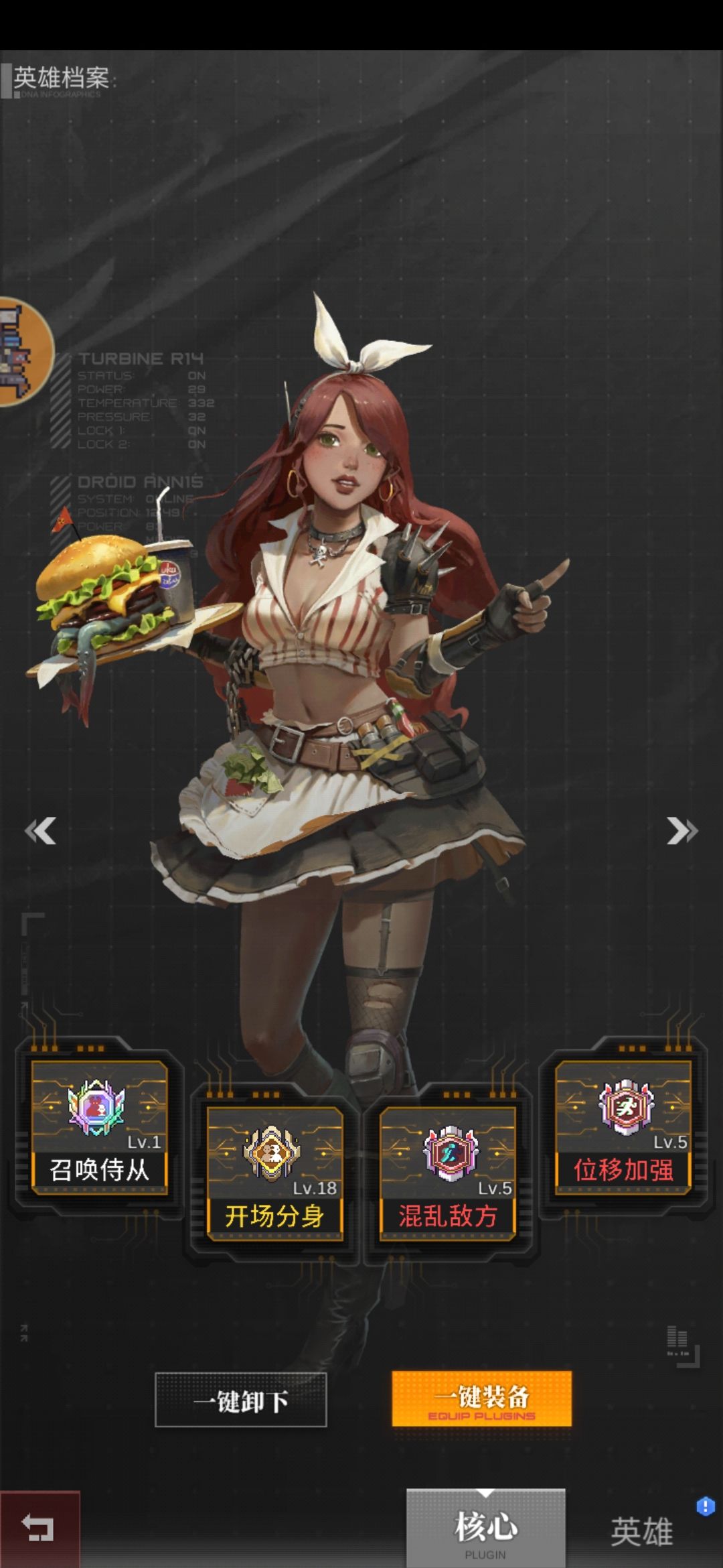 核心简单说一下,复活核心不是必须的,但是有条件的话可以让胖子,丘吉尔,女王这三位都装备上,阵容强度会提高不少。月读和汉堡妹的核心是重点,照抄不会错的,位移加强和混乱的等级越高越好。有多余的分身可以给丘吉尔和女王带,个人感觉丘吉尔对于持续连击和连击加倍的需求不是很高,配个复活就行。就这样吧,有更好的搭配多多交流