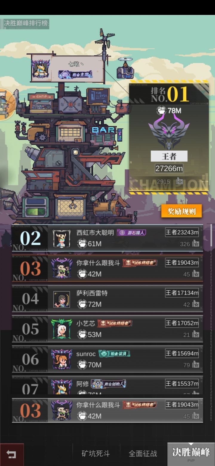 目前PVP最稳的阵容,成型后胜率很高,高到用diao划都能赢(手动狗头),前两名分高得离谱,赢一局加23分肝不动了。