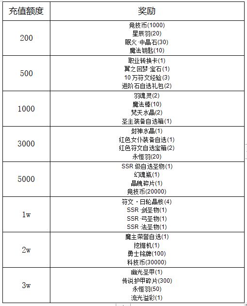 1,【累充达标】即可获得相应奖励以及低档位所有奖励