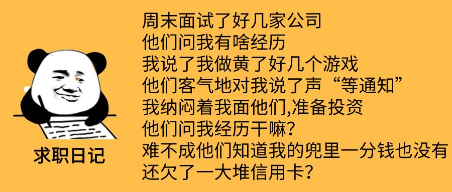 短短一个星期天,我面了4家公司,可他们一听我整黄了那么多游戏。