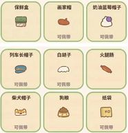 保鲜盒—招待条纹豺狼255次、画家帽—餐厅营业满7天和招待画家獾、奶油蓝莓帽子—招待蓝莓刺猬255次、列车长帽子—招待边境牧羊犬1000次、白胡子—招待梗220次、火腿肠—招待田园犬200次、柴犬帽子—招待柴犬110次、狗粮—招待白柴犬195次、纸袋—招待纸袋鸵鸟190次。