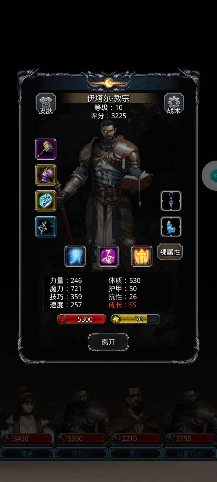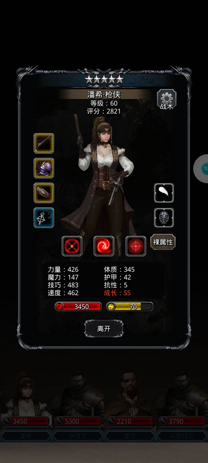 伤害的话建议是刺客,夜魔(五星)只开连击(当时没有看boss是不是免疫的,所以我只开了连击),我还配了一个火枪手,但是感觉他没什么用,一直命中不了,所以感觉还不如用三奶加刺客,英雄全5星基本上不用重伤就能过。