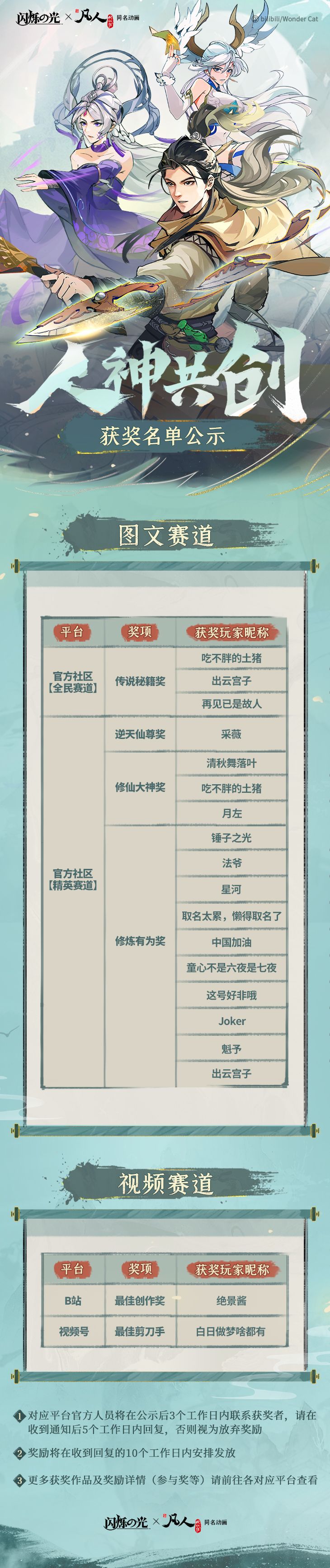 《闪烁之光》x《凡人修仙传》动画联动版本共创活动获奖名单公示!