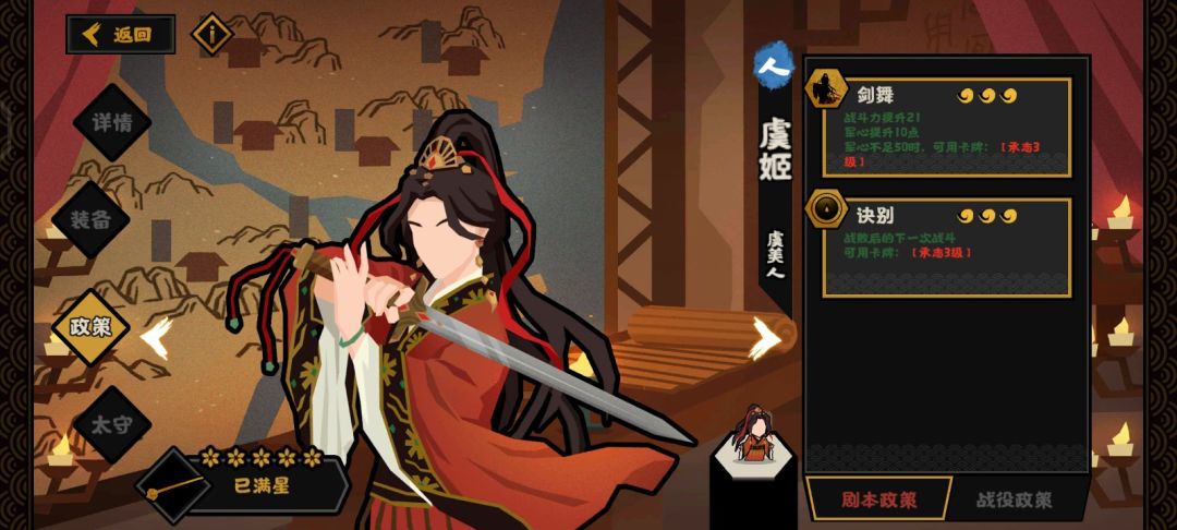 二技能奇袭和霍去病的二技能同理,需要1铁,太贵而且伤害还打不满,但是战役里面比较舒服,0粮草拿卡牌,伤害还高