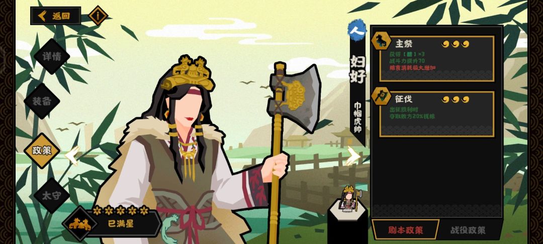 妇好之所以能排上来,是因为二技能征伐:出征胜利时,掠夺对方20%钱粮,因为ai不缺钱粮,所以很容易出征一次弄得钱粮一大堆,不用为了钱粮发愁