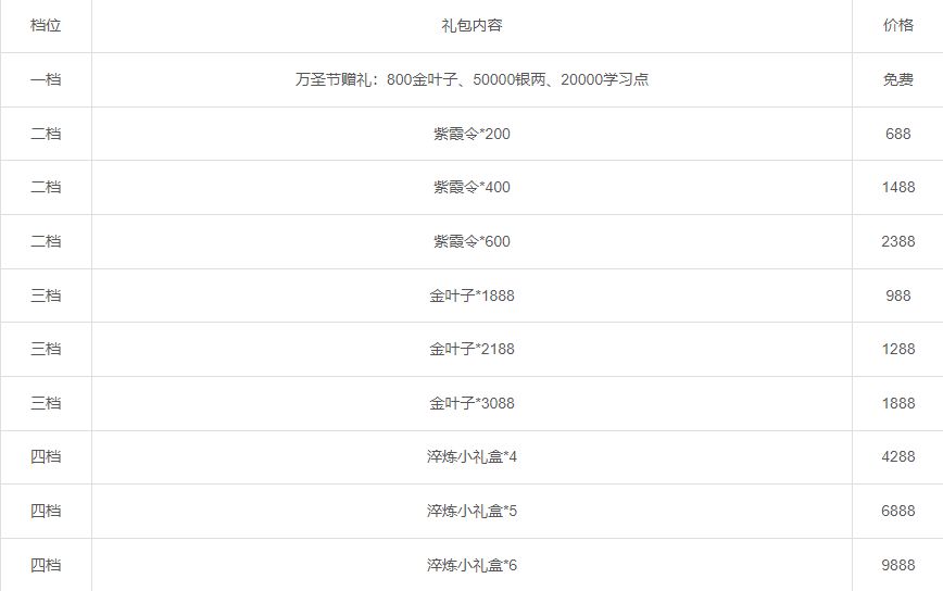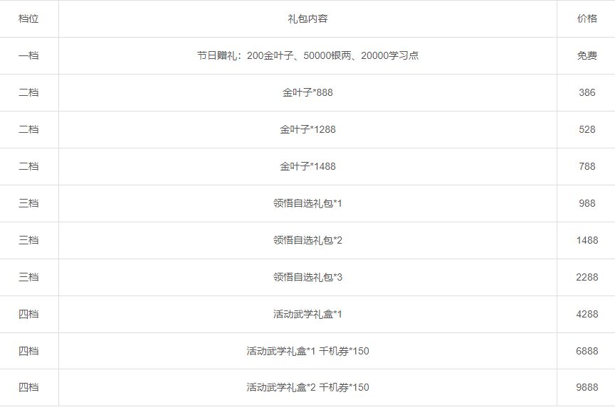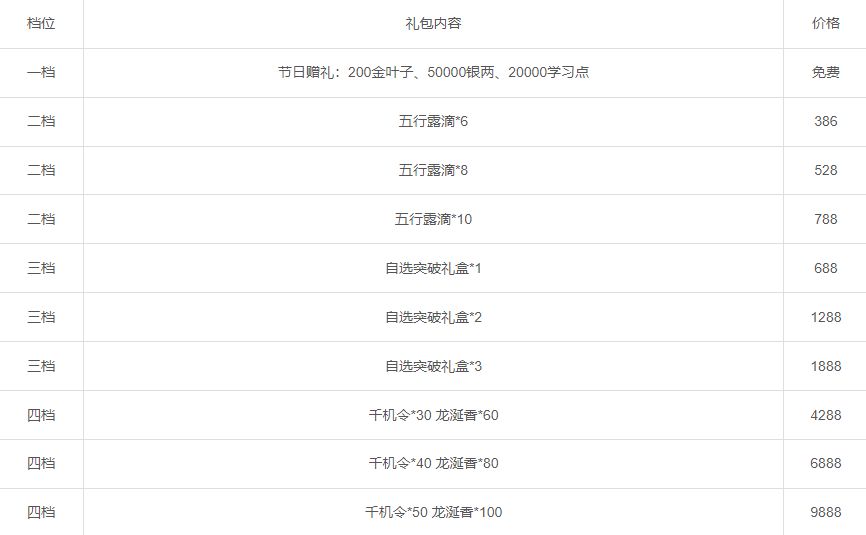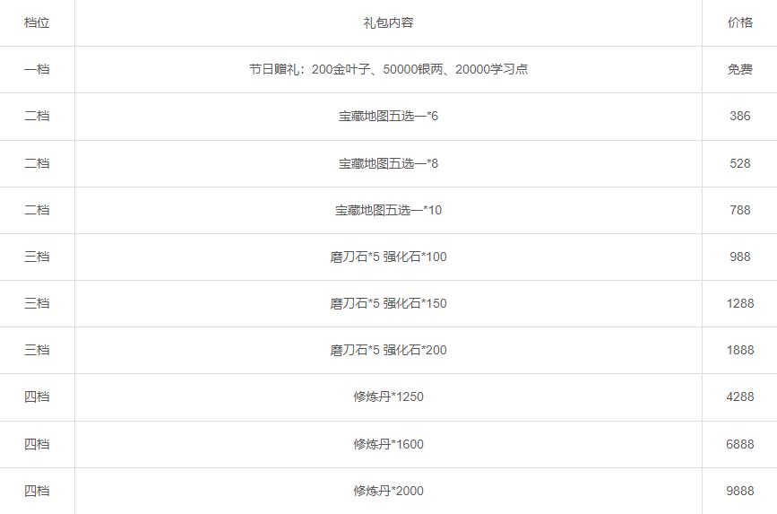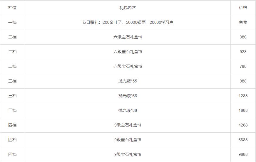 活动一:活动期间将限时上架节日礼包,礼包内容如下