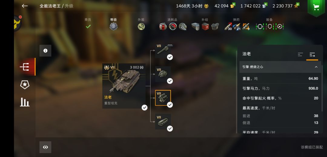 38/13的速度只能说是令人两眼一黑,13的倒车,对于弹夹车来说非常致命,本来爆发就有点慢了还可能跑不了,法老多少得因为拉胯倒车挨一两发。(导轮也是又大又脆,最好带俩修理包,那不然很可能打三发就交代了)
