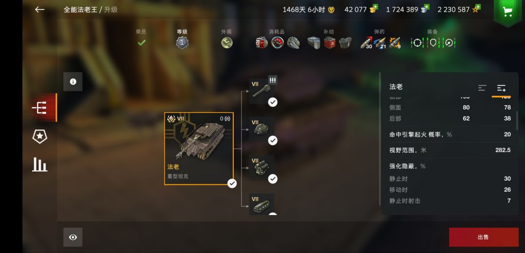 加血后近1700的血(加甲对下有无敌角度,但很难摆),七级重坦标准,282的视野非常优秀,车体正面的荷鲁斯之眼不是白长的,由于庞大的车体,隐蔽性也别想了。