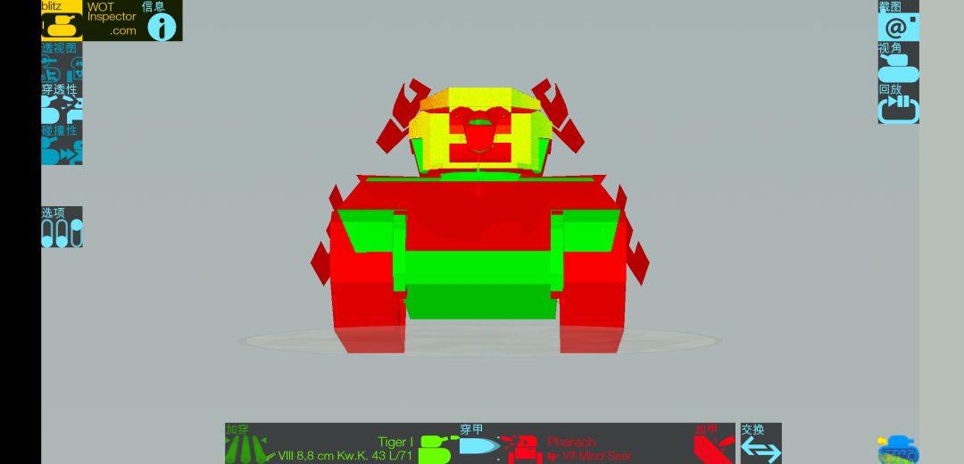 总体而言,车体大可放心,炮塔卡200穿深线,往下全红往上环保装甲。