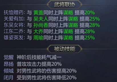 ·女将被动倾城、闭月先不用多说,伤害、防御各加成20%。