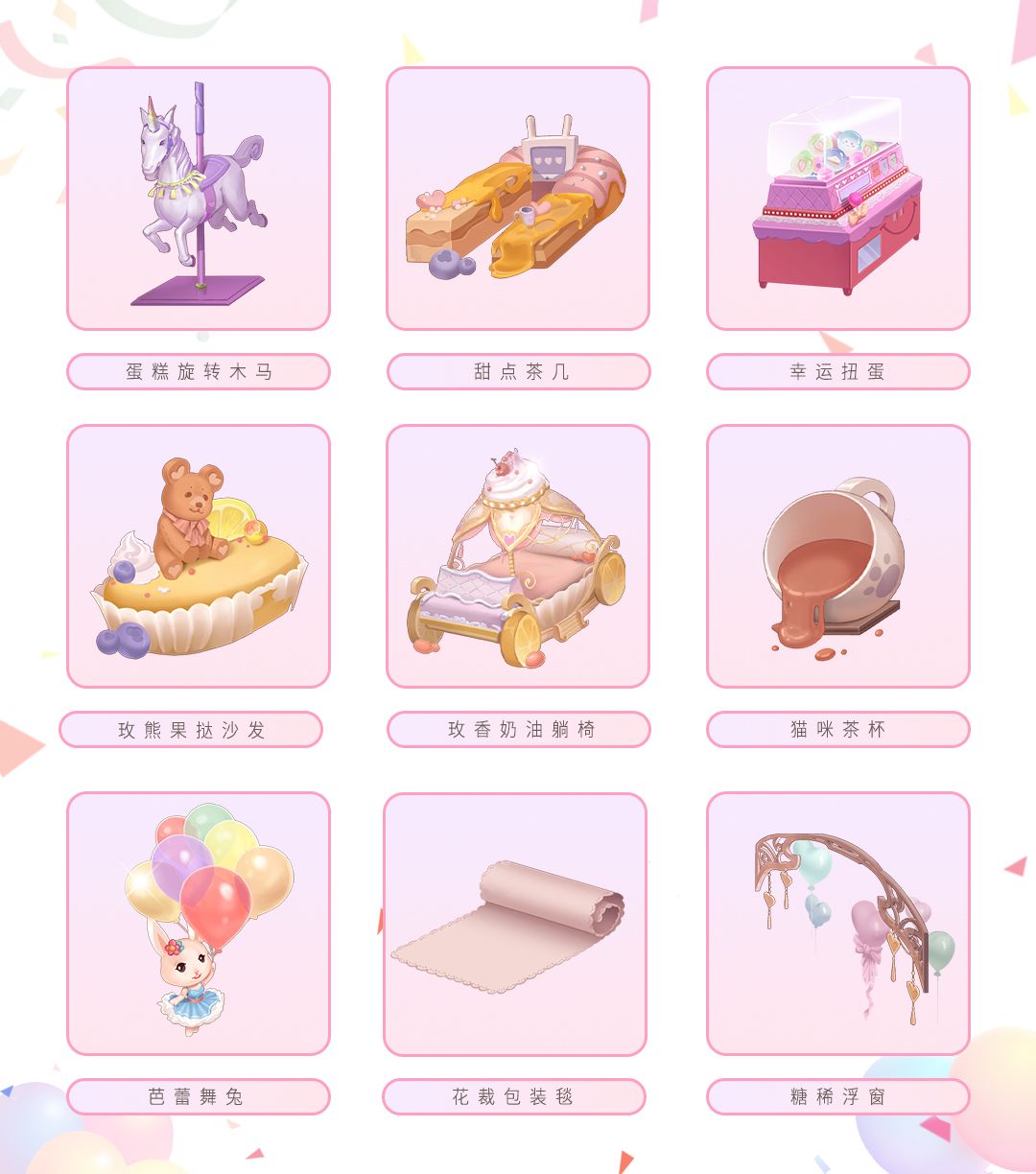 1、在品尝蛋糕中,三小姐每一轮都可以自由选择想要放入的奖励,除了友谊的巨轮、扑克牌、黑胶唱片等丰富的道具奖励之外,还可选择甜茶定制礼盒、甜茶自提礼盒或甜茶随机礼盒,获得首次推出的简约风格家居-甜茶派对。