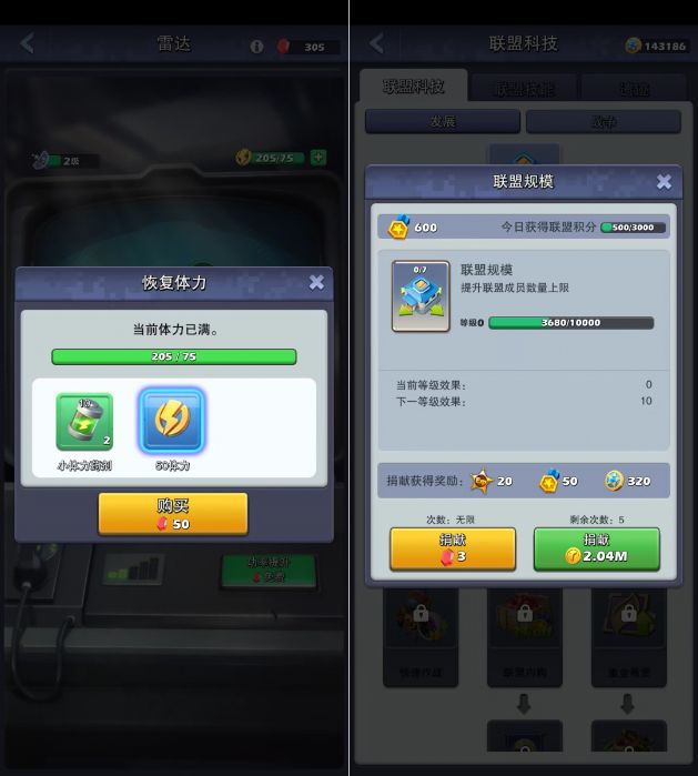 1.联盟科技捐献可以增加联盟积分,用金币捐献即可,只要有剩余次数就捐献,尽量不要让剩余捐献次数溢出10次
