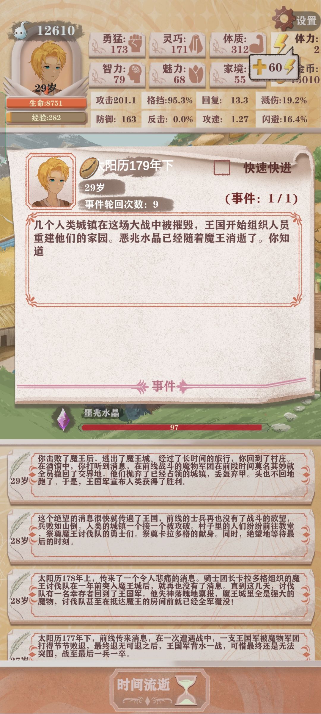 能过最重要的就是一直sl 负面事情就sl 和小朋友玩耍魅力加2就sl 打副本没出遗迹或者没高级装备就重起游戏 打完团长后的那个恶兆没-10就sl(39前不需要sl)
