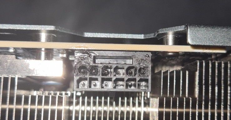 从其分享的照片可以看到,显卡电源接口下方12针孔位处受损最严重,上方的4针还好。这位玩家认为他的转接线缆可能有质量问题,正寻求厂商换货。目前暂无法弄清这个问题的真相。