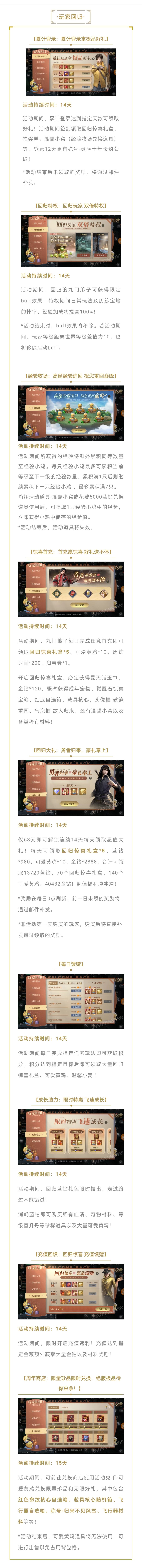 勇士归来,再启征程。各位九门弟子,玩家回归活动今日开启!符合条件的弟子参与活动,即可有机会追回