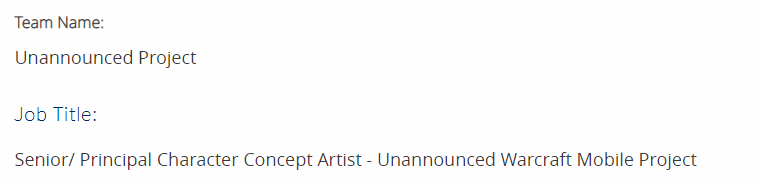 招聘信息显示,这是一款“未公开的项目”,因此可以确定不是之前公布的《魔兽弧光大作战》。
